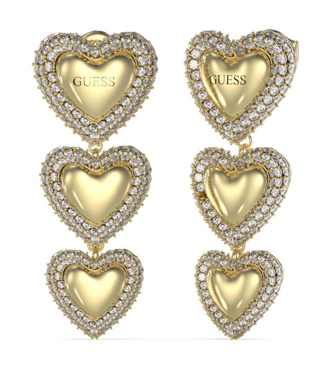 Kullanväriset GUESS Beloved sydänkorvakorut JUBE05013JWYGT/U on viimeistelty kauniilla kristalleilla. Nämä hieman pidemmät sydänkorvakorut on valmistettu ruostumattomasta teräksestä, ja niiden koko on 40 mm. Takaa löytyy tappikiinnike. GUESS-korvakorut toimitetaan valmistajan kauniissa rasiassa.