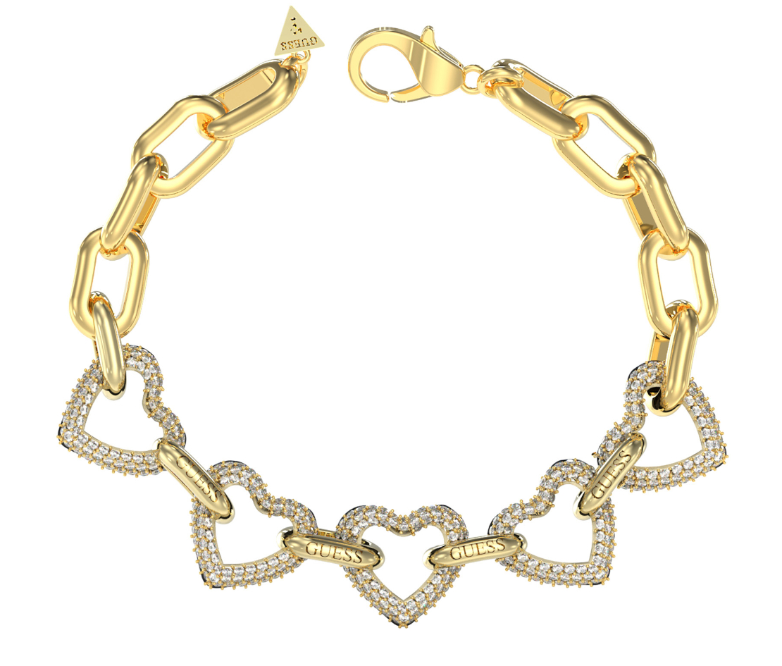 Kullanvärinen GUESS Beloved sydänrannekoru JUBB05014JWYGS on viimeistelty näyttävillä sydänriipuksilla ja kauniilla kristalleilla. Sydänrannekoru on valmistettu ruostumattomasta teräksestä, ja sen koko on S (14,6 + 18,4 cm). Sydänriipuksen koko on 15 mm. GUESS-rannekorut toimitetaan valmistajan kauniissa rasiassa.