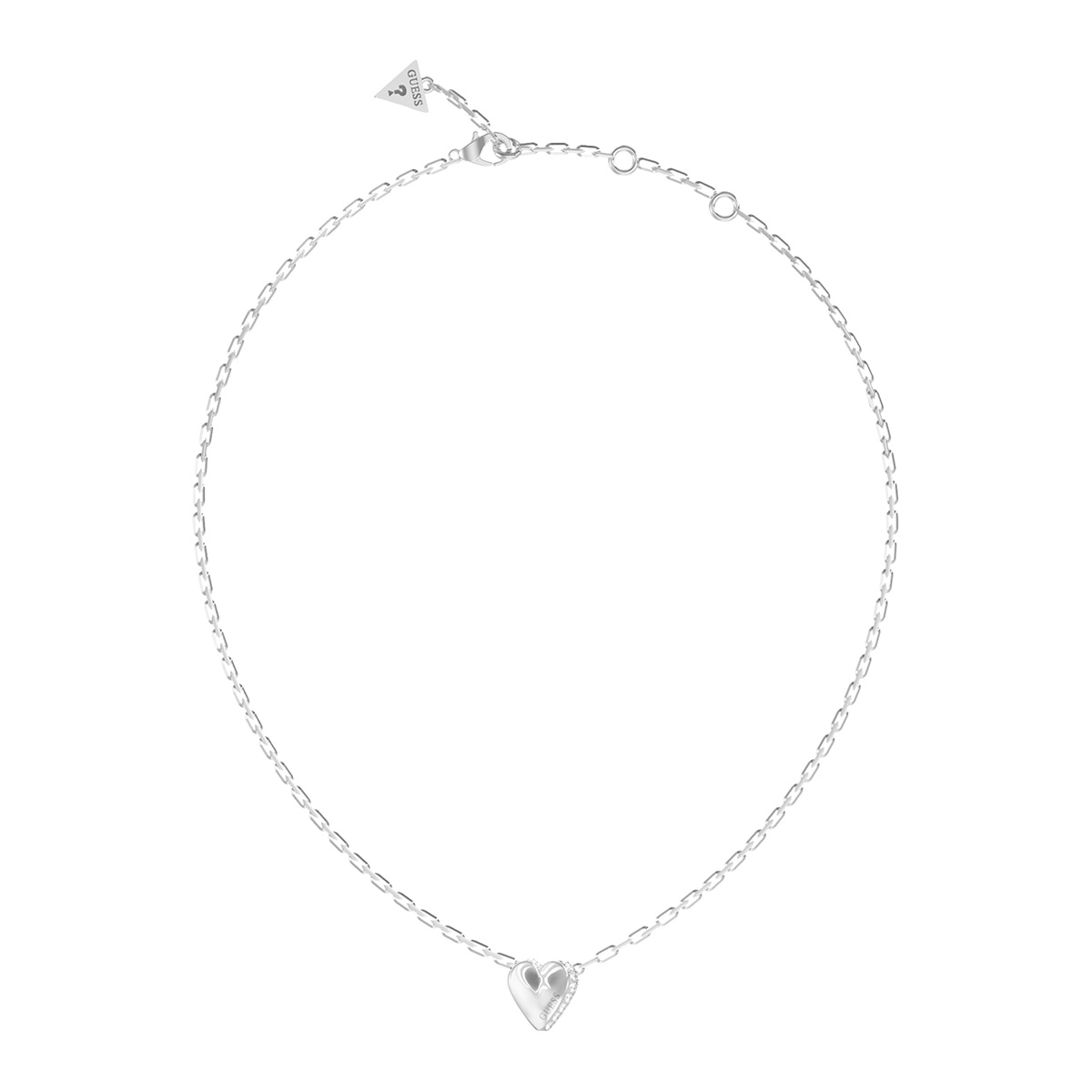 GUESS By Your Side JUBN06087JWRHT/U on lämpöä ja hienostuneisuutta huokuva kaulakoru, josta riippuu kaunis hopeanvärinen sydänhela. Kaulakoru on valmistettu ruostumattomasta teräksestä ja siinä on helposti avattava/suljettava papukaijalukko. Tämä naisten muotikoru sopii erinomaisesti täydentämään niin minimalistista kuin näyttävämpääkin asustetta. Klassinen ja romanttinen sydän‑riipus tekee siitä myös oivan lahjaidean lähimmäiselle tai rakkaalle. Sydänhelan koko 8 mm. Kaulaketjun pituus 40,7 - 45,7 cm.