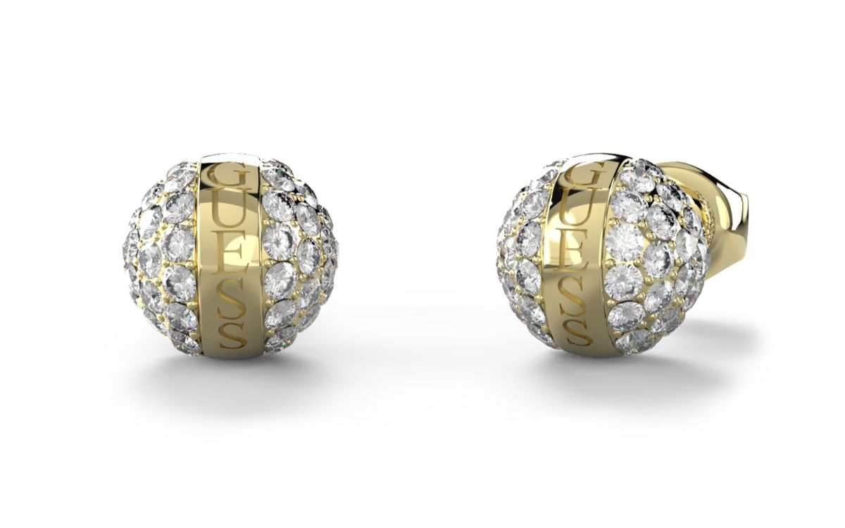 GUESS Calypso kullanvärisissä korvakoruissa JUBE04459JWYGT/U on kaunis 7 mm leveä riipus, jonka pintaa koristaa useat kirkkaat kristallit kimaltaen kauniisti. Takaa löytyy tappikiinnike. GUESS-korut toimitetaan valmistajan rasiassa.