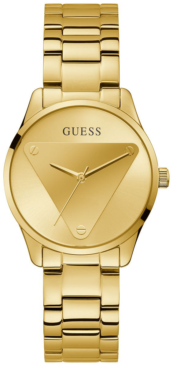 GUESS Emblem GW0485L1 on tyylikäs naisten kello, jonka ruostumattomasta teräksestä valmistettu 36 mm leveä ja 9,2 mm paksu runko on kullanvärinen. Rannekkeena tässä mallissa on kullanvärinen ruostumaton teräsranneke. GUESS GW0485L1 -kellon samppanjanväristä kellotaulua suojaa mineraalilasi. Kello kuuluu vesitiiviysluokkaan 30m / 3atm eli se on roiskevesitiivis. GUESS-kellot toimitetaan valmistajan alkuperäisessä pakkauksessa ja niillä on kahden vuoden takuu.