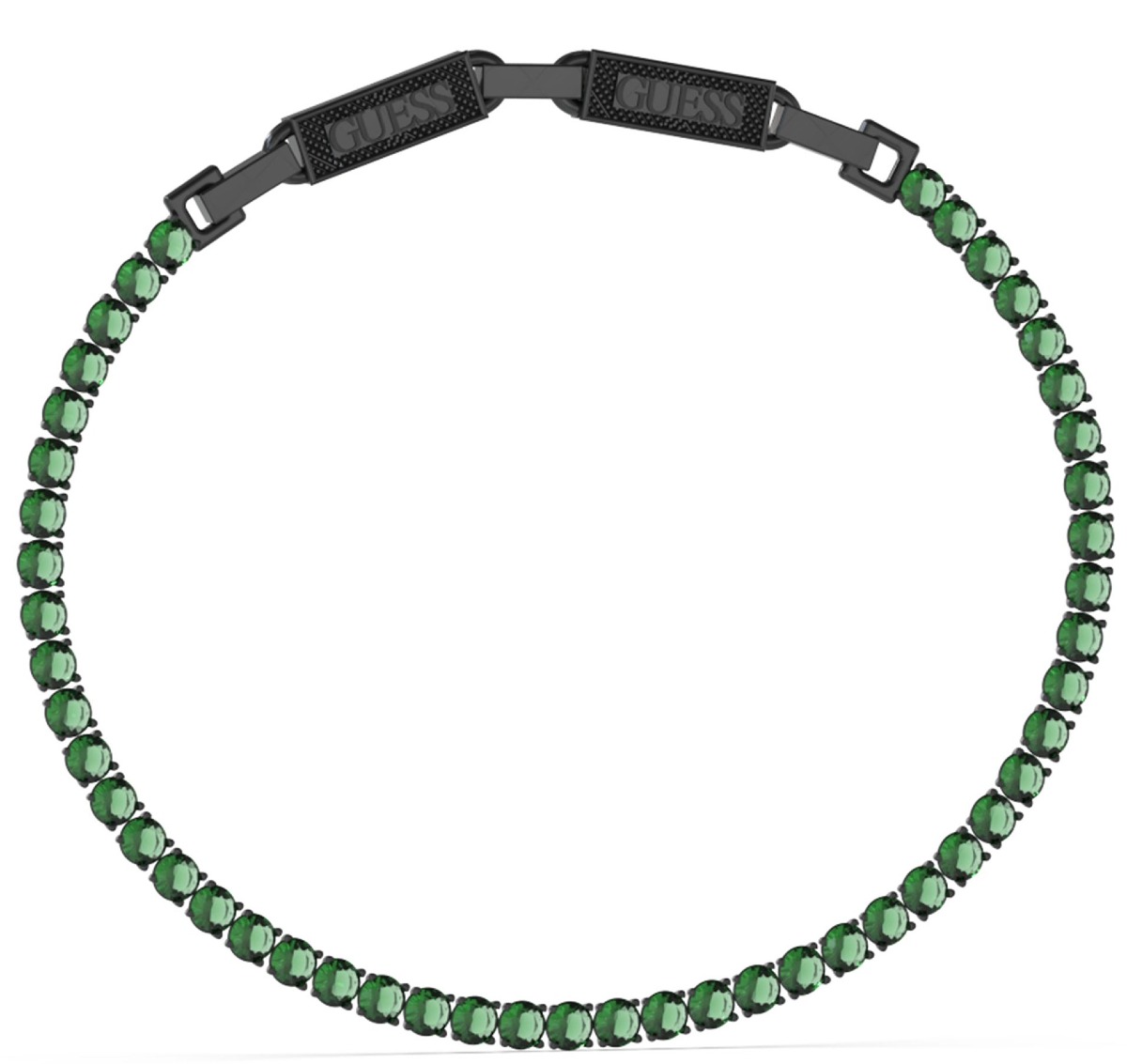 GUESS Eternity musta tennisrannekoru JUMB03237JWBKBKT/U on viimeistelty korukivillä. Tennisrannekoru on kevyt ja huomaamaton asuste, joka kuitenkin tuo näyttävyyttä useisiin eri asusteisiin. Rannekorun pituus on säädettävissä välille 19-21,5 cm, ja paksuus on 3 mm. .