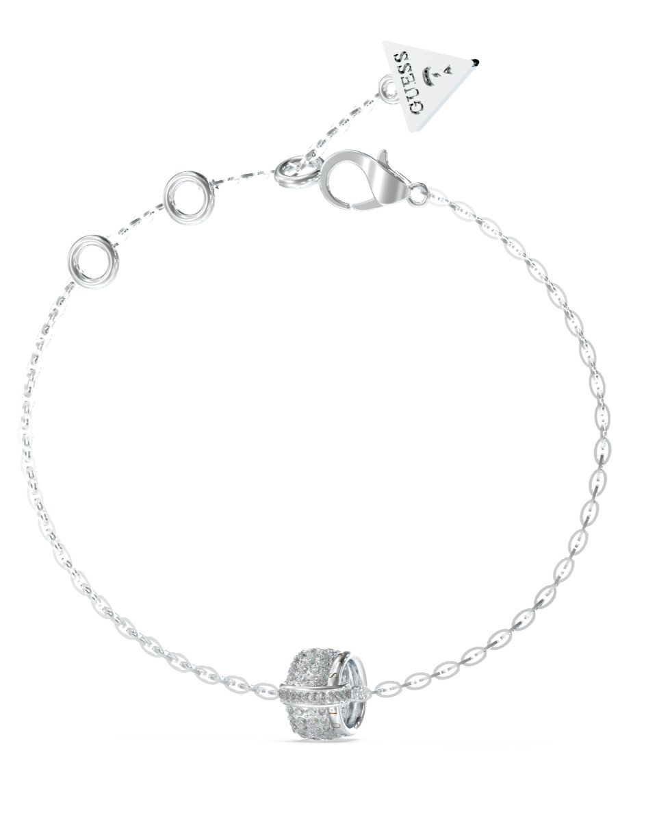 Hopeanvärinen GUESS Fabulous Me rannekoru JUBB05196JWRHS on viimeistelty näyttävällä riipuksella, jonka pintaa koristaa kymmenet briljanttihiotut kristallit. Koru on valmistettu ruostumattomasta teräksestä, ja sen koko on S (14,6 + 18,4 cm). Riipuksen koko on 14 mm. GUESS-rannekorut toimitetaan valmistajan kauniissa rasiassa.