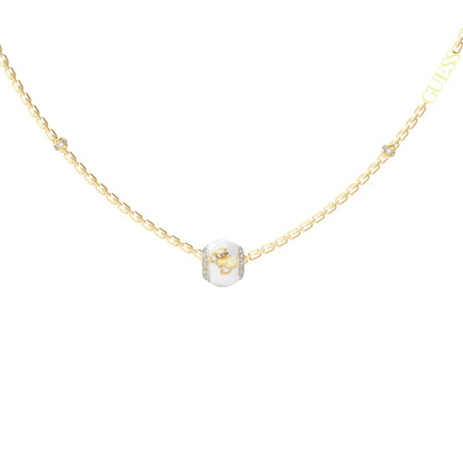 Monogrammikuvioidut asusteet ovat kautta aikain olleet ylellinen naisten somiste. Guess 4G-monogrammikuvioitu JUBN02281JWYGWHT/U kaulakoru on koristeltu valkoisella emaloidulla riipuksella, ja kullanvärisen ketjun pituus on säädettävissä 40-45 cm pituuteen. Guess-korut toimitetaan valmistajan alkuperäisessä rasiassa.