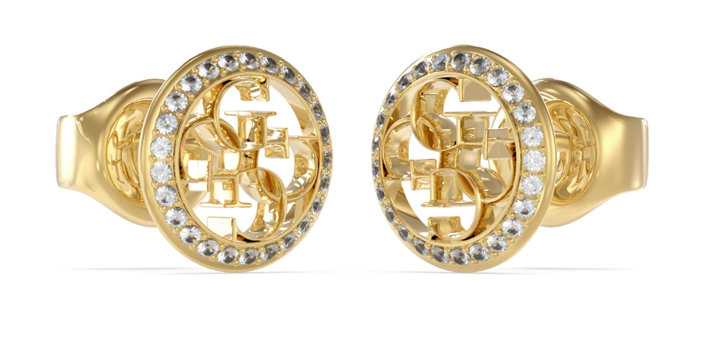 Nämä kullanväriset Guess JUBE02136JWYGT/U korvakorut on ylellinen ja näyttävä asuste, ja niitä koristaa Guessin neljästä g-kirjaimesta muodostettu logo ja synteettiset zirkoniat. Koko: 11 cm. Guess-korut toimitetaan valmistajan alkuperäisessä rasiassa.