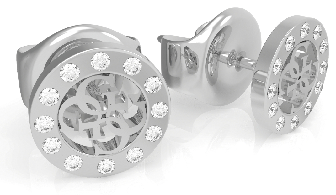 Hopeanväriset Guess UBE79033 Miniatyr-korvakorut on ylellinen ja näyttävä asuste, ja niitä koristaa Guessin neljästä g-kirjaimesta muodostettu logo ja synteettiset zirkoniat. koko:10 mm.Guess-korut toimitetaan valmistajan alkuperäisessä rasiassa.