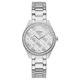 GUESS Sugar GW0001L1 on hopeanvärinen naisten kello, jonka 37 mm leveä ja 10 mm paksu runko on valmistettu ruostumattomasta teräksestä. Kellossa on hopeanvärinen teräsranneke. Hopeanvärinen kellotaulu on koristeltu GUESS-logoilla ja glitterillä. GUESS GW0001L1 -kellon kauniin ulkoasun kruunaa kehää kiertävät korukivet. Rannekello kuuluu vesitiiviysluokkaan 30 m / 3 atm eli se on roiskevesitiivis.