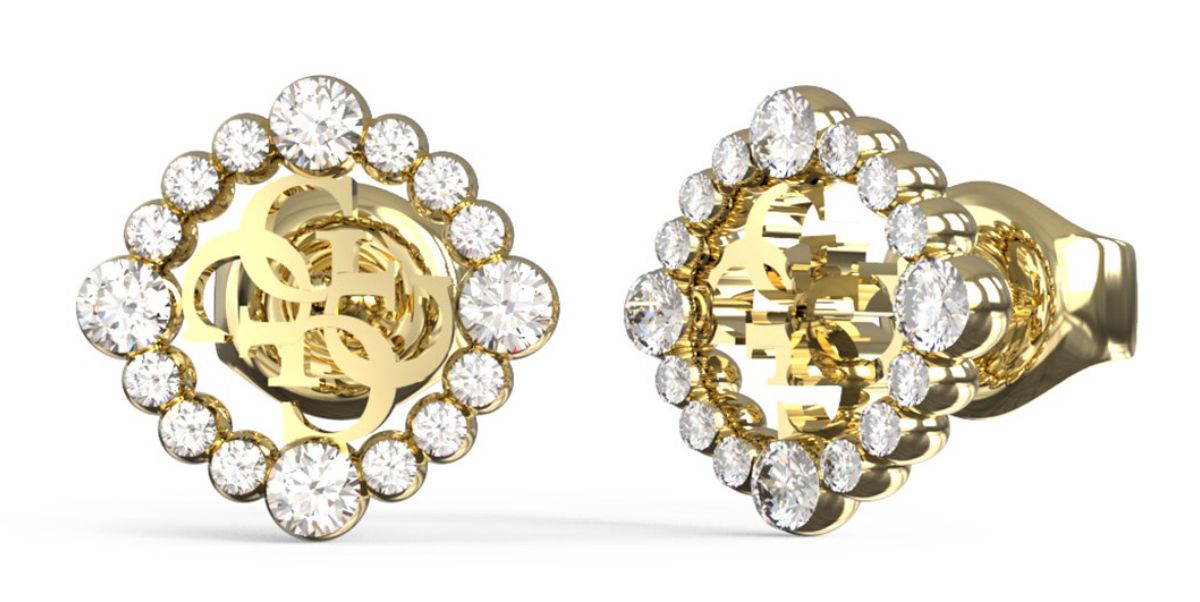 GUESS Tiny dancer kullanväriset korvakorut JUBE04645JWYGT/U on kullanväristä ruostumatonta terästä, ja niitä koristaa Guessin G-logo, sekä kirkkaat kristallit. Nappikorvakorujen koko on 10 mm. GUESS-korut toimitetaan valmistajan rasiassa.