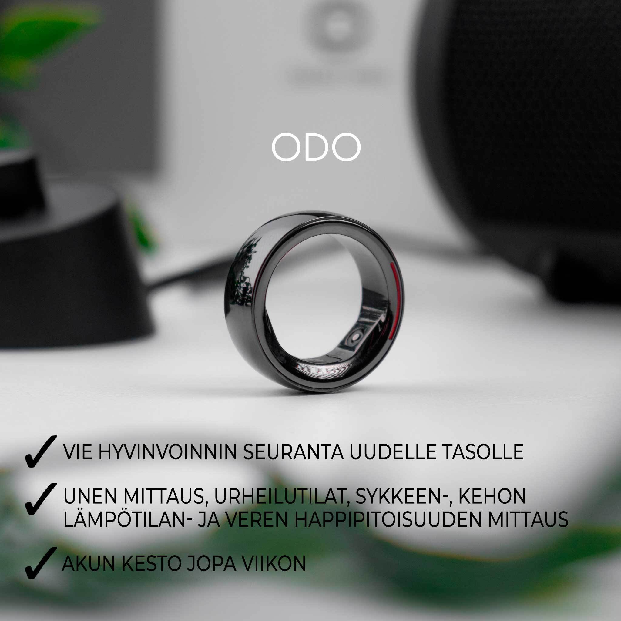 Odo Älysormus 3 on älykäs ja huipputeknologinen sormus, joka on suunniteltu seuraamaan terveyttäsi ja hyvinvointiasi monipuolisesti. Sormuksen tyylikäs ja minimalistinen muotoilu tekee siitä sopivan kaikkiin tilanteisiin, olipa kyseessä sitten työpäivä tai juhlaillallinen. Tämä ruostumattomasta teräksestä ja nanokeramiikasta valmistettu laadukas älysormus painaa vain kahdeksan grammaa. Helppokäyttöinen laturi sisältyy pakkaukseen. HUOM! Sormusta suositellaan käytettäväksi keskisormessa parhaiden tulosten saavuttamiseksi. Sormus on leveä, joten on suositeltavaa ottaa puolikas-yksi koko suurempi sormus kuin normaalisti.