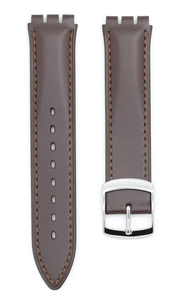 Hirsch Diego Swatch nahkaranneke 640 02 0 10 on valmistettu ruskeasta vasikan nahasta. Ranneke on suunniteltu yhteensopivaksi Swatch kellojen kanssa. Tämä malli sopii Swatch miesten kellohin, joissa rannekkeen kiinnityskohdasta on 17 mm. Rannekkeen nahkaosien yhteispituus on 19 cm. Hirsch-rannekkeille myönnetään 1 vuoden takuu, joka kattaa valmistus ja materiaaliviat.