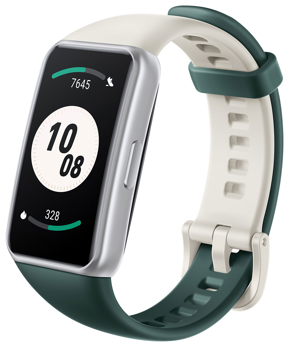 HONOR Band 7 Emerald Green aktiivisuusranneke ihastuttaa uudella, tyylikkäällä värimaailmallaan. Tämä keväällä 2022 julkaistu aktiivisuusranneke on kaikki mitä aktiivisuusrannekkeelta saatat toivoa – ja vielä vähän enemmän. HONOR Band 7 Emerald Green on varustettu suurella AMOLED-näytöllä, mutta muotoilu on kapea ja nelikulmainen, ja siksi täydellinen esimerkiksi urheiluun. Nelikulmainen runko tukee ranteen luonnollista muotoa ja siksi aktiivisuusranneke tuntuu hyvin huomaamattomalta ranteessa. 18 gramman paino (ilman ranneketta) takaa, että kello on varsin miellyttävä käytössä. Polymeerista valmistettu runko on pinnoitettu ohuella metallipinnoitteella ja on 43 mm korkea, 25,4 mm leveä ja 11 mm paksu. Vihreä-valkoinen silikoniranneke on likaa hylkivä, ja se sopii ranteisiin, joiden ympärysmitta on 130-210 mm.