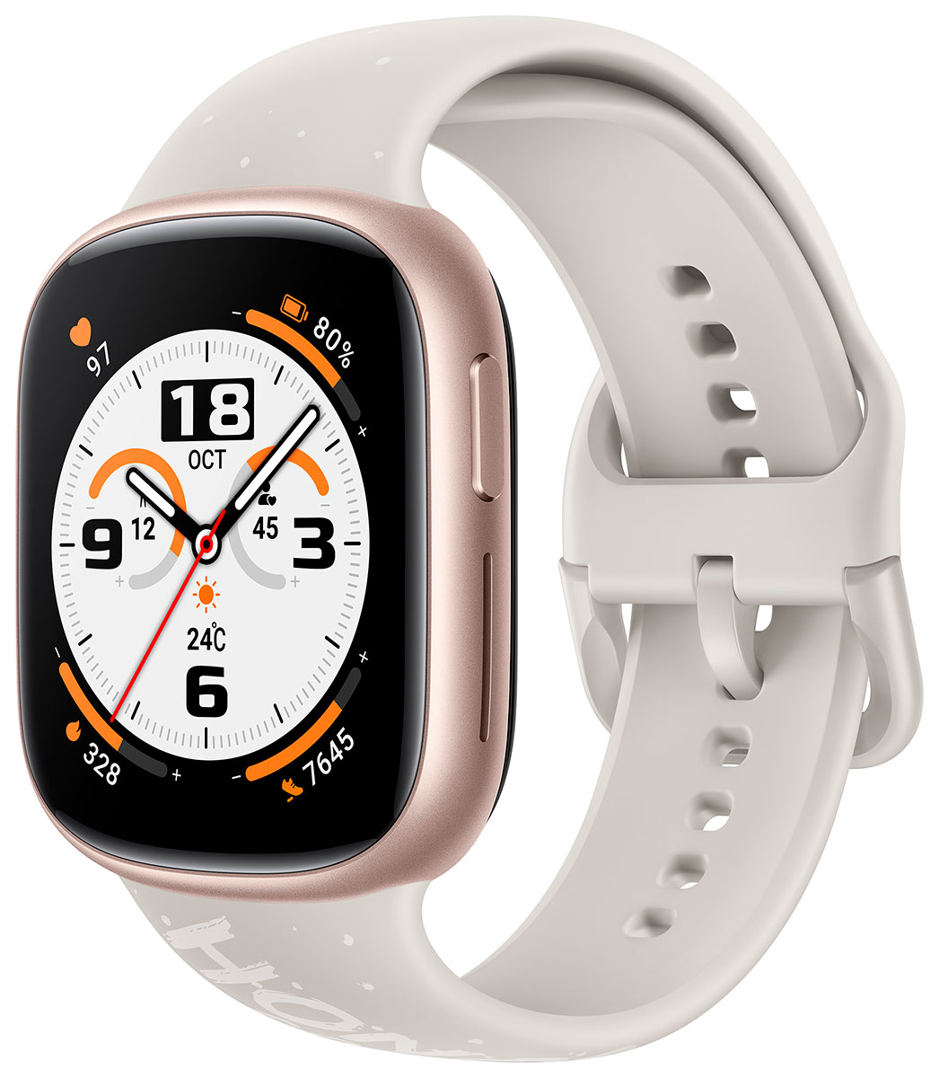 Honor Watch 4 Gold -älykellossa yhdistyy tyylitelty muotoilu kestävällä alumiinirungolla. 1,75 tuuman AMOLED-näytössä on 60 Hz virkistystaajuus ja Always On Display -ominaisuus; näytön kirkkaat värit mahdollistavat kellotaulun selvän lukemisen päivänvalossakin. Yli 300 erilaista ladattavaa kellotaulua tekee Honor Watch 4 -kellosta helposti muokattavan mieleiseksi.