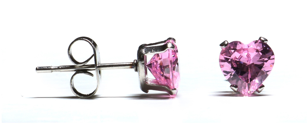 Kerro se sydämin! Hopeapuro Hani vaaleanpunainen korvakoruja koristaa klassinen ja ajaton kruunuistutettu sydämenmuotoinen zirkonia. Näiden sydänkorvakorujen halkaisija on 6 mm, ja runko on 316L kirurginterästä. Hopeapuron korut ovat nikkelivapaita, ja ne toimitetaan valmistajan alkuperäisessä pakkauksessa.