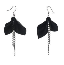 Hopeapuro Made by Anette Ahokas Yöperhonen musta, ketjulla-korvakorut ovat suomalaista käsityötä ja muotoilija Anette Ahokkaan suunnittelemat. Korujen inspiraationa toimi yöperhosten yöllinen leikki. Korut on valmistettu ruostumattomasta teräksestä, kierrätysnahasta ja kotimaisesta poronnahasta. Korkeus ilman koukkua 70 mm, leveys 40 mm. Hopeapuron korut ovat nikkelivapaita, ja ne toimitetaan valmistajan alkuperäisessä rasiassa.