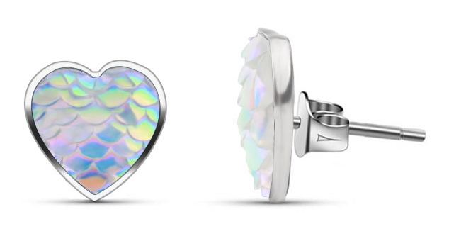 Hopeapuro Simpukka-sarjan Helmi korvakoruissa on ihana meriaiheinen teema. Korun valkoinen pinta välkehtii useissa eri väreissä ja sydämenmuotoinen runko on hopeanväristä 316L kirurginterästä. Halkaisija 13 mm. Hopeapuron korut ovat nikkelivapaita, ja ne toimitetaan valmistajan alkuperäisessä pakkauksessa.