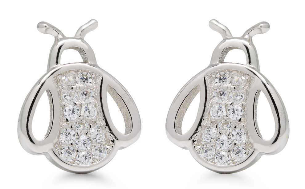 E-3661Z-hopeakorvakoruissa pörrää kuin kesälaitumella pikkuinen kärpänen. Tämän hyönteisen selkään on upotettu zirkonioita, ja sterling-hopeasta valmistettujen korujen korkeus on 9,5 mm. E-0255Z-korvakorut toimitetaan valmistajan alkuperäisessä pakkauksessa.