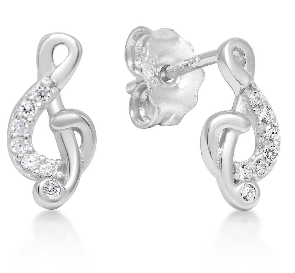 Nuottiavain zirkonia E-2979Z-korvakoruissa on kuvattu g-avain, ja avaimen pintaan on istutettu useita zirkonoita. Takaa löytyy tappikiinnike, ja rodinoinnin ansiosta korujen pinta ei tummu. Korvakorujen leveys on 10,4 mm, ja ne toimitetaan valmistajan alkuperäisessä pakkauksessa.