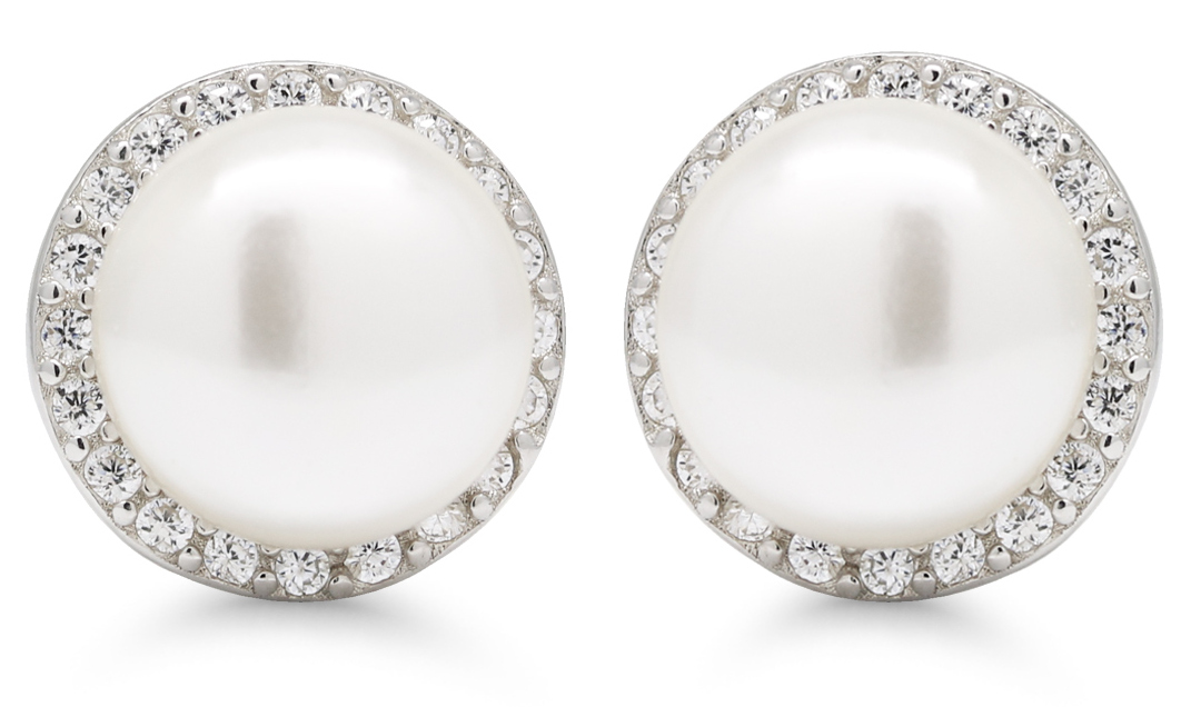 Valkoisissa 8mm aito helmi-zirkonia E-1382ZP-korvakoruissa on viktoriaaninen halo-istutus, jossa 8 mm leveää aitoa makeanvedenhelmeä ympäröi briljanttihiotut zirkoniat. Näiden korvakorujen kokonaislevys on 10,2 mm. Korun runko ja tappikiinnike on sterling-hopeaa. Helmikorvakorut toimitetaan valmistajan alkuperäisessä pakkauksessa.