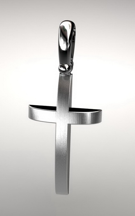 Tyylikäs rodinoitu hopeinen risti. Risti on valmistettu 925-sterling hopeasta, ja sen mitat ovat 14 x 24 mm. Toimitetaan postikuluitta korurasiassa.