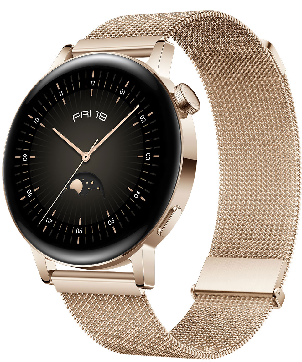 Huawei Watch GT 3 Gold 42 mm kullanvärinen mesh-ranneke 55027151 -älykello sopii täydellisesti niin urheiluun kuin jokapäiväiseen käyttöönkin. Klassisen muotoilunsa, vaihdettavien rannekkeiden ja tuhansien erilaisten kellotaulujen avulla voit tehdä kellostasi juuri itsesi näköisen. Laite sopii täydellisesti aktiiviselle henkilölle, joka ei kaipaa pelkästään treenikaveria, vaan haluaa myös esimerkiksi seurata unenlaatuaan ja stressitasojaan.