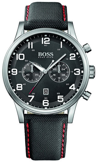 Tyylikäs miesten Hugo Boss 1512919 pilottirannekello kankaalla päällystetyllä nahkarannekkeella. Kellon rungon leveys on 44mm ja rannekkeen leveys 20mm. Kellossa ajanotto-ominaisuus eli kronografi sekä päivyri. Hugo Boss kelloille myönnetään kahden vuoden takuu. Toimitetaan valmistajan alkuperäisessä rasiassa postikuluitta!
