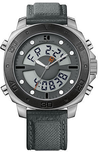 Hugo Boss orange rannekello 1512680. Rungon leveys 47mm ranneke 22mm. Kellossa myös taustavalo.Ranneke nahka/nylon.Toimitetaan valmistajan alkuperäisessä pakkauksessa.