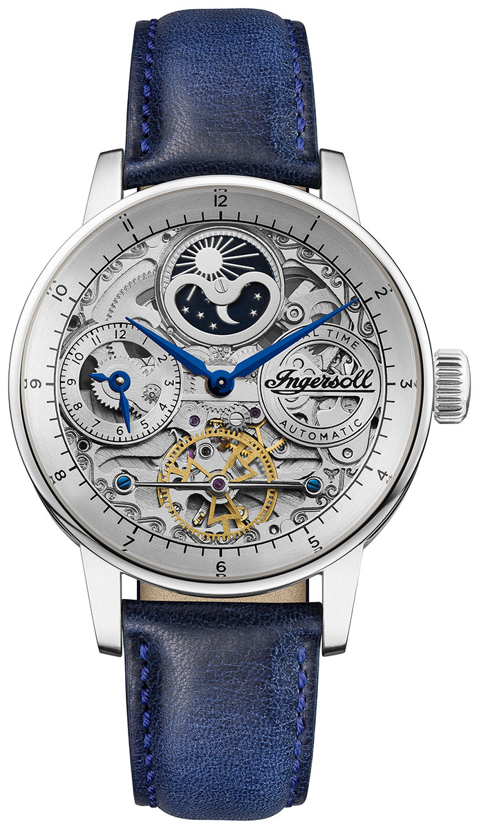 Ingersoll The Jazz Automatic I07702 on tyylikäs miesten automaattikello, jonka 42 mm leveä ja 16 mm paksu hopeanvärinen runko on valmistettu ruostumattomasta teräksestä. Runkoon kiinnittyy sininen nahkaranneke, jonka leveys kiinnityskohdasta on 20 mm. Mineraalilasin alla suojassa on luurankokellotaulu, jossa kuunkiertonäyttö. Ingersoll I07702 kuuluu vesitiiviysluokkaan 50m / 5atm eli se on rajoitetusti vesitiivis (uintia ei suositella). Ingersoll-kelloilla on 2 vuoden takuu. HUOM! Kellon mukana ei toimiteta alkuperäistä rasiaa (Huomioitu hinnassa).