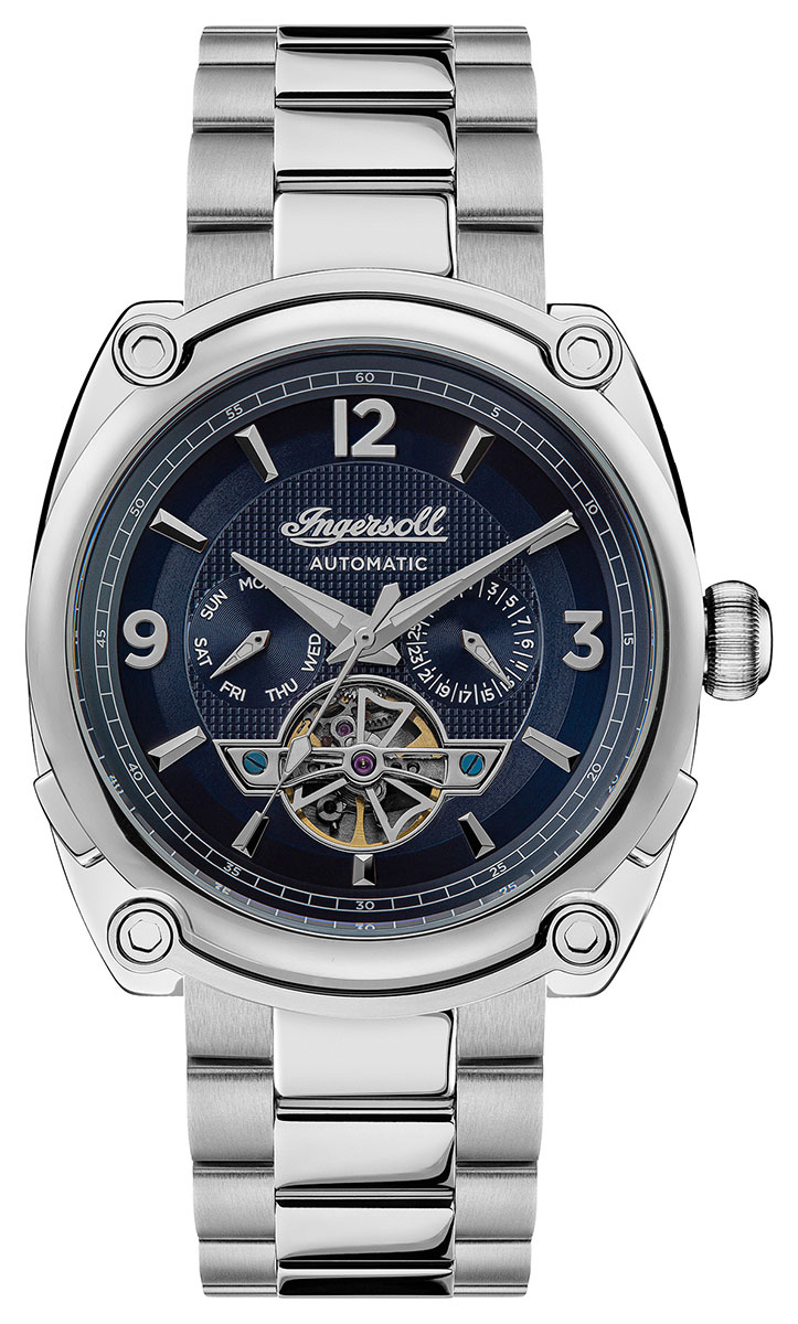 Ingersoll The Michigan Automatic I01107 on tyylikäs miesten automaattikello, jonka 45 mm leveä ja 15 mm paksu hopeanvärinen runko on valmistettu ruostumattomasta teräksestä. Runkoon kiinnittyy hopeanvärinen ruostumaton teräsranneke, jonka leveys kiinnityskohdasta on 24 mm. Mineraalilasin alla suojassa on sininen kellotaulu, jossa päivyri ja viikonpäivänäyttö. Ingersoll I01107 kuuluu vesitiiviysluokkaan 50m / 5atm eli se on rajoitetusti vesitiivis (uintia ei suositella). Ingersoll-kelloilla on 2 vuoden takuu. HUOM! Kellon mukana ei toimiteta alkuperäistä rasiaa (Huomioitu hinnassa).