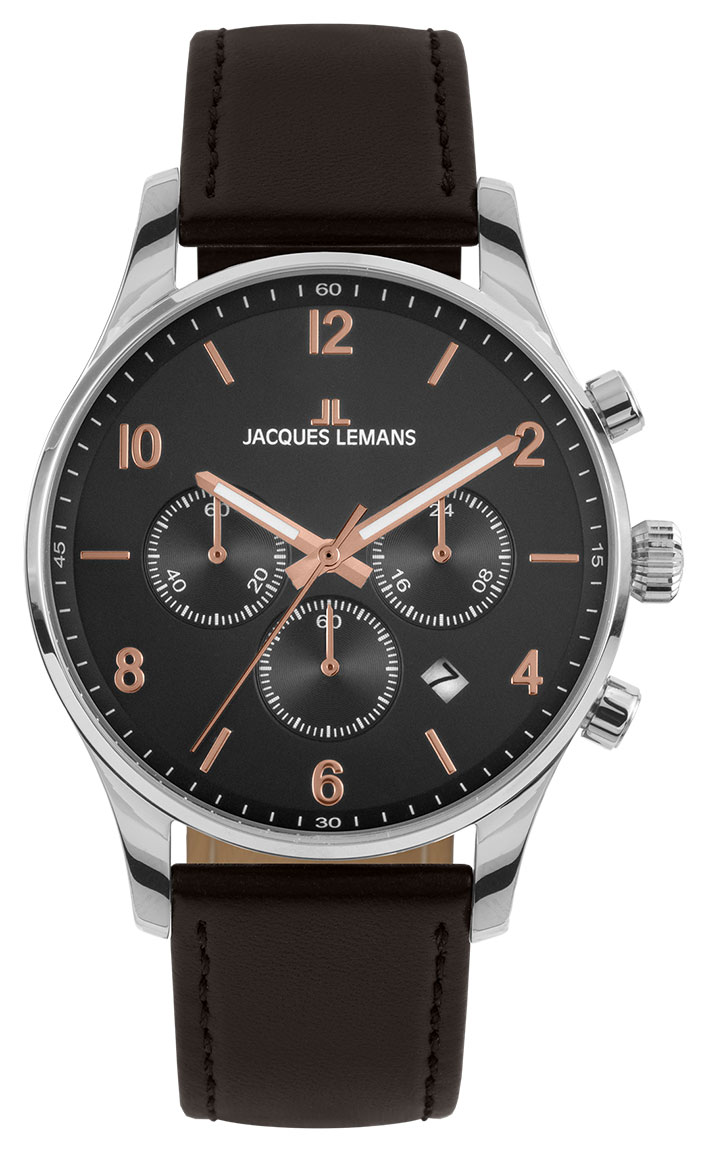 Jacques Lemans London 1-2126F on tyylikäs miesten kronografikello. Kellon 42 mm leveä runko on valmistettu hopeanvärisestä ruostumattomasta teräksestä. Mineraalilasin alla suojassa on harmaa kellotaulu, jossa päivyri ja ajanotto-ominaisuudet. Rannekkeena kellossa on ruskea nahkaranneke. Jacques Lemans 1-2126F kuuluu vesitiiviysluokkaan 50m / 5atm eli se on rajoitetusti vesitiivis (uintia ei suositella). Jacques Lemans -kelloilla on 2 vuoden takuu ja ne toimitetaan valmistajan alkuperäisessä rasiassa.