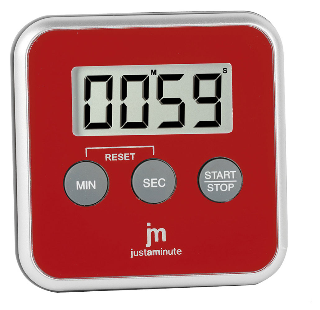 Justaminute JT5412R ajastin on kätevä varuste esim ruoanlaittoon Ajastimen voi ripustaa seinälle, laittaa seisomaan tai kiinnittää magneetilla esimerkiksi jääkaappin. Ajasint toimii yhdellä AAA-paristolla (paristo ei sisälly hintaan). Justaminute-kelloilla on yhden vuoden takuu.
