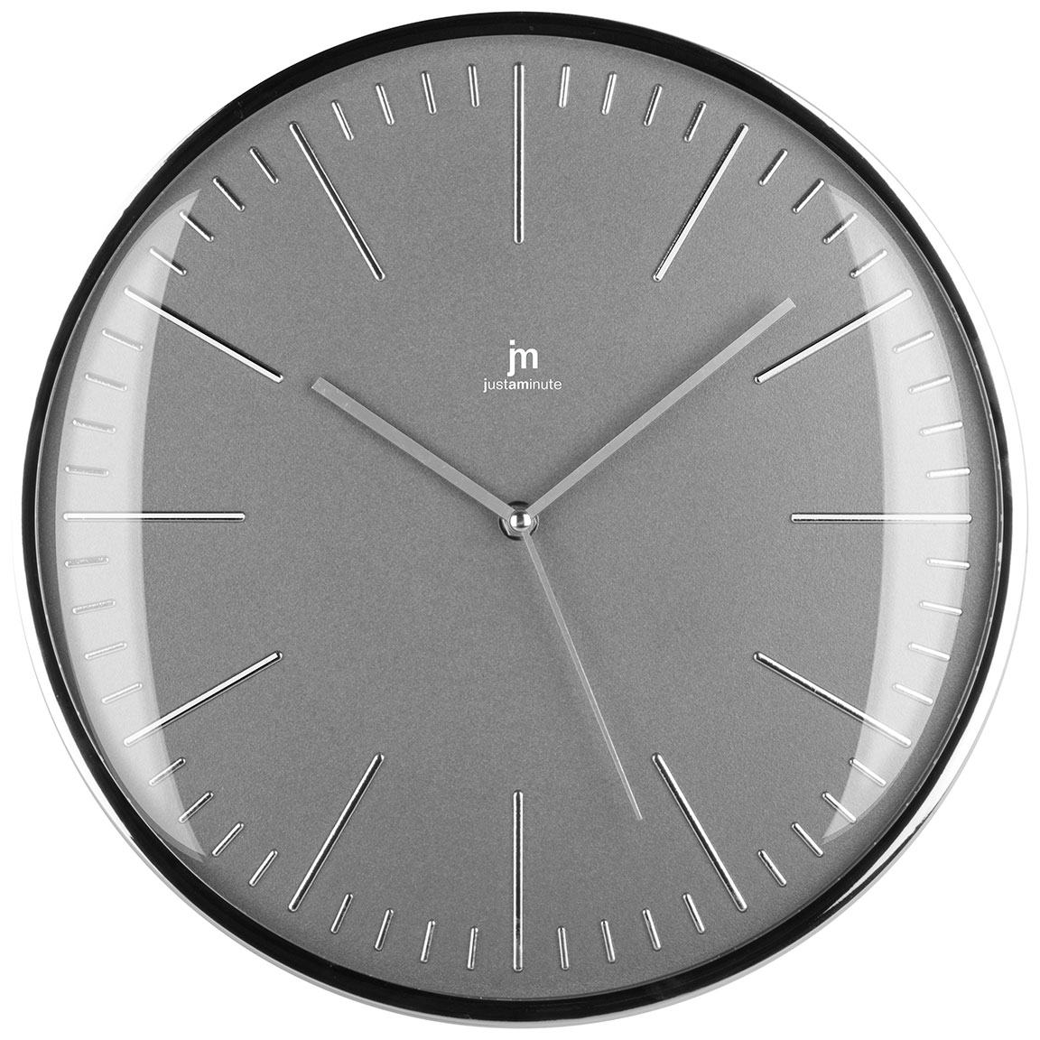 Justaminute 00881G on tyylikäs muovinen seinäkello mustalla kehyksellä. Seinäkellon halkaisija on 35 cm. Kellossa on harmaa kellotaulu ja harmaat osoittimet ja indeksit. Koneisto on hiljainen. Kello toimii yhdellä AA-paristolla (paristo ei sisälly hintaan). Justaminute-kelloilla on yhden vuoden takuu.