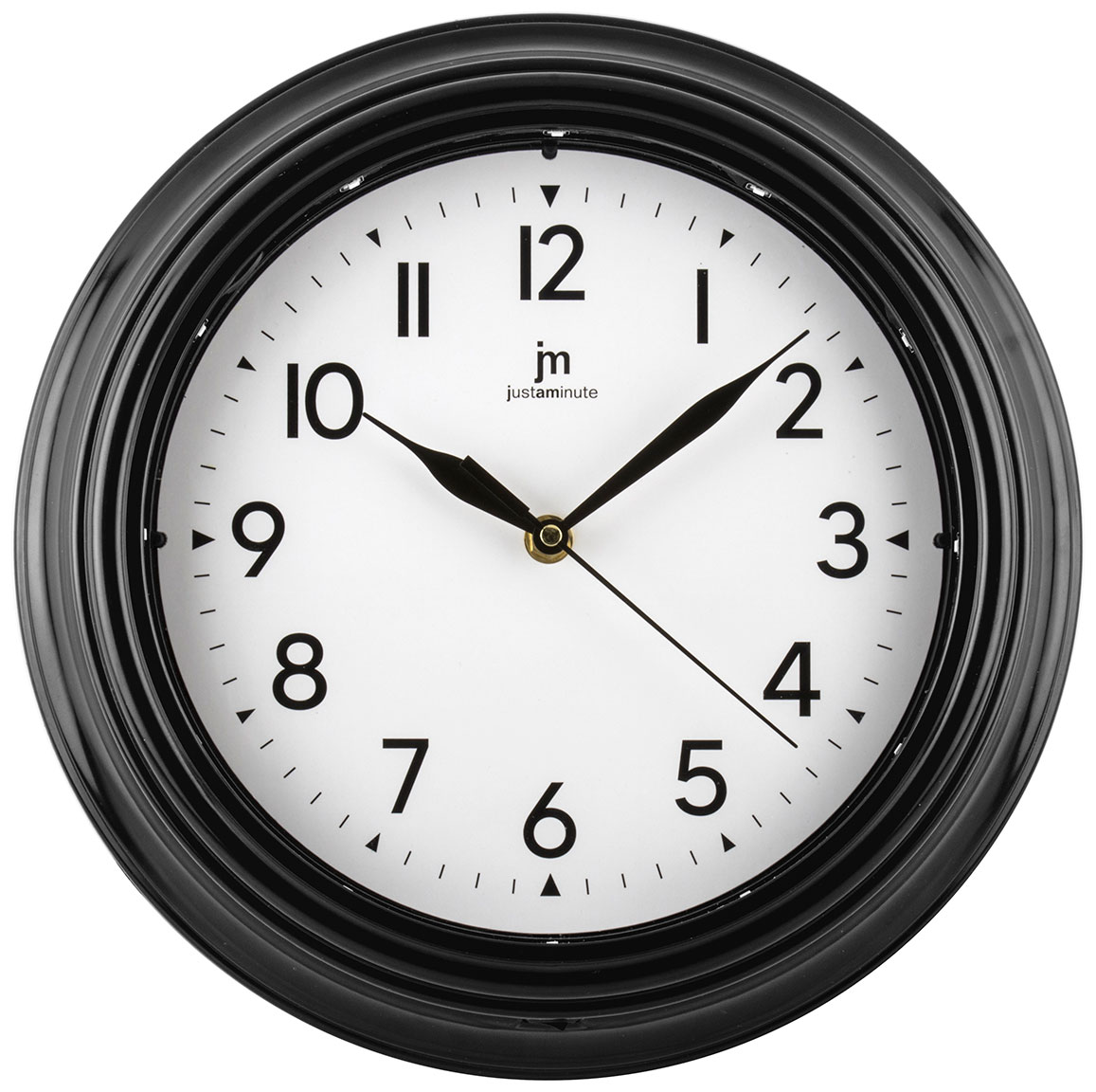 Justaminute 00884 on tyylikäs muovinen seinäkello mustalla kehyksellä. Seinäkellon leveys on 30 cm. Kellossa on valkoinen kellotaulu, jossa mustat osoittimet ja indeksit. Koneisto on hiljainen. Kello toimii yhdellä AA-paristolla (paristo ei sisälly hintaan). Lisäksi tarvitset kolme AA-paristoa LED-valoja varten. Justaminute-kelloilla on yhden vuoden takuu.
