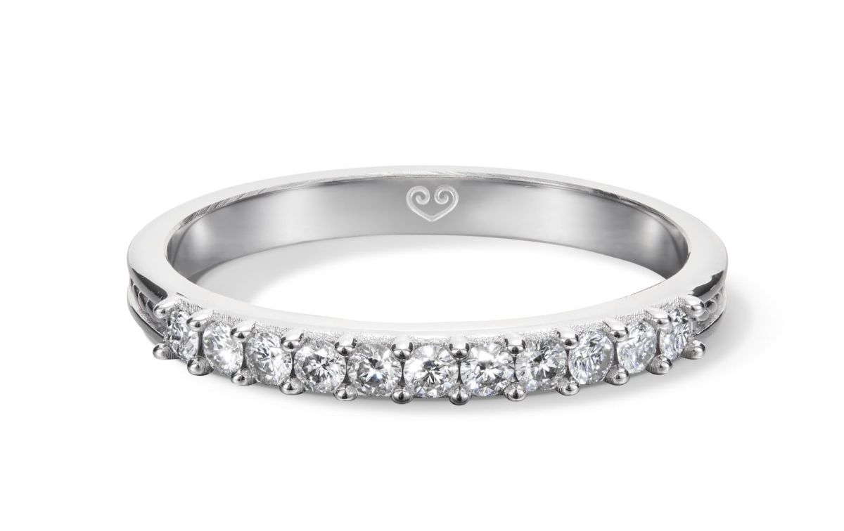 Kalevala Love -sormusmalliston valkokultainen Kalevala Ikiaikainen sormus 541000114L juontaa juurensa 300-luvun esihistorialliseen sormukseen, joka löydettiin Varsinais-Suomesta. Tuo ikivanha sormus on säilyttänyt upean kultaisen loistonsa liki kaksi vuosituhatta. Se tehtiin ikiaikaiseksi ja siksi tämäkin sormus on Ikiaikainen. Rivisormuksen kaunis nyörikoriste kiertää sormusta symboloiden ikuista rakkautta. Sormuksen valkokultaista runkoa koristavat yksitoista kauniisti välkehtivää 0,02 karaatin laboratoriotimanttia. Rungon leveys on 2,3 mm ja se sopii täydellisesti yhteen muiden Kalevala Love -sormusten kanssa.