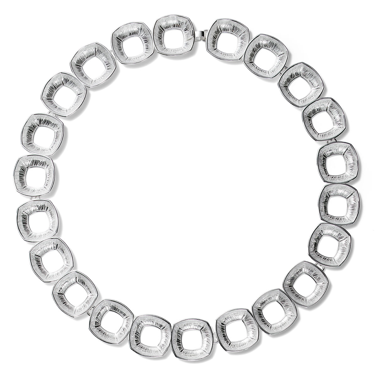 Tässä elegantissa ja upeasti muotoillussa korusarjassa heijastuu suomalainen design. Puhtaan ja kirkkaan sävyinen hopeakaulakoru on täydellinen valinta juhlavaan tilaisuuteen ja hetkeen jossa haluat että korusi huomataan. Näyttävän Kaiho-korusarjan on suunnitellut Taru Harmaala Chaloff.
