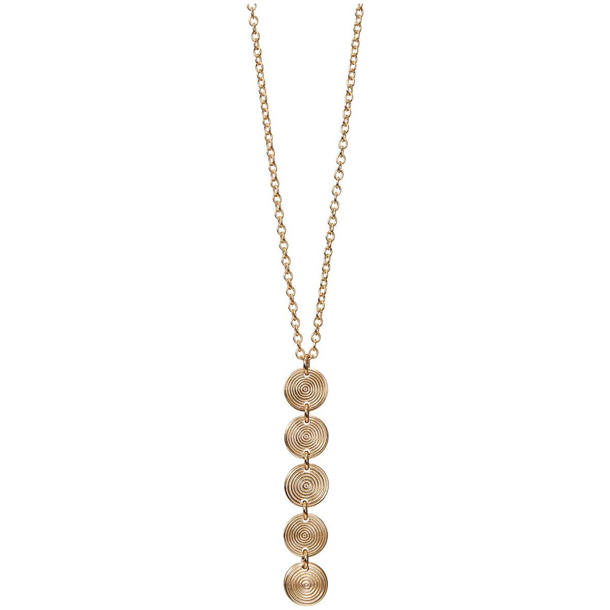 Näyttävä viidestä kosmos spiraalista koostuva pronssinen Kalevala Kosmos riipus 3268774550 on moderni ja tyylikäs. Yksi spiraali on kooltaan 10mm ja riipusosan korkeus on 58 mm. Pronssisen ankkuriketjun pituus on säädettävissä 42/45/50 cm mittaiseksi. Kaulakoru on valmistettu käsityönä Suomessa ja sen materiaali on osittain kierrätetty pronssi. Koru on erinomainen valinta lahjaksi ja se sopii käytettäväksi kaikenlaisten asujen kanssa.