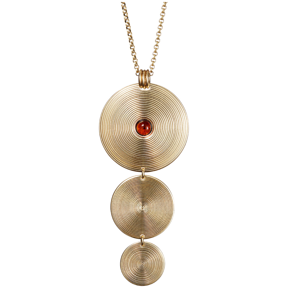 Upeassa Kalevala Kosmos 3268770ME45 riipuksessa yhdistyy kullanhohtoinen pronssi ja lämminhehkuinen Itämeren meripihka. Sävyt luovat harmonisen ilmeen, joka herättää katsojan kiinnostuksen. Kosmos-koruissa yhdistyy rentous, minimalistinen tyylikkyys ja moderni muotoilu. Kaulakorussa on kolme erikokoista Kosmos-spiraalia papuketjussa. Ketjun pituutta voi säätää 42/45 cm mittaiseksi. Riipuksen korkeus on 94 mm ja se on valmistettu käsityönä Suomessa.