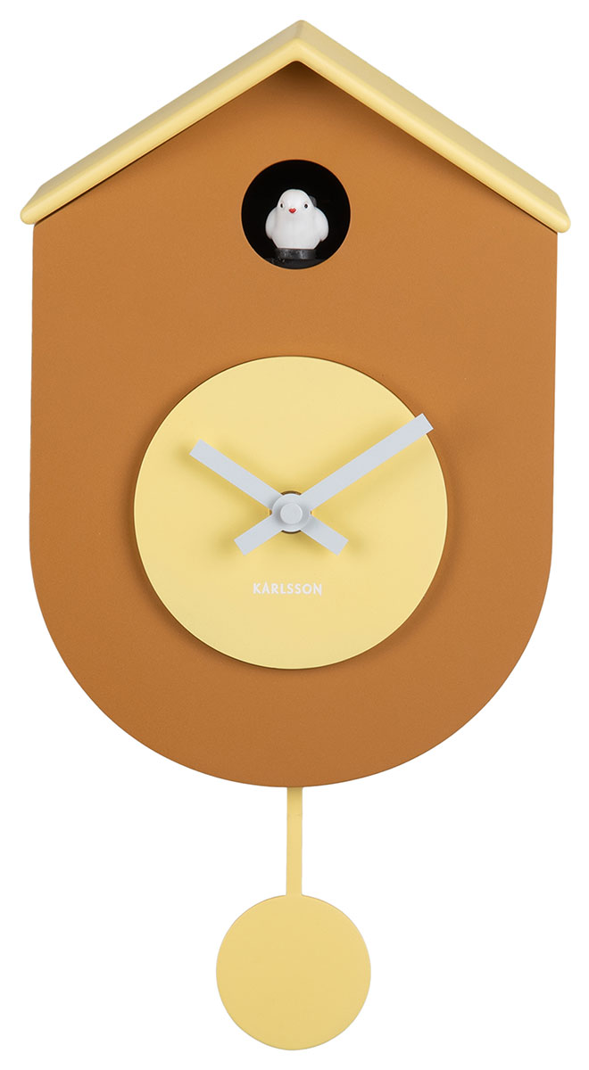 Karlsson Grato Cuckoo KA6026YE on tyylikäs vaaleanruskea käkikello heilurilla, jossa on sileä ja pyöreä pohja. Valkoinen lintukoriste visertää kauniisti tasatunnin välein. Seinäkello on valmistettu ABS-muovista ja se on korkeudeltaan 33,2 cm, leveydeltään 17,5 cm sekä paksuudeltaan 9,2 cm. Kello toimii 3 kpl x AA-paristoja (paristot ei sisälly pakkaukseen).