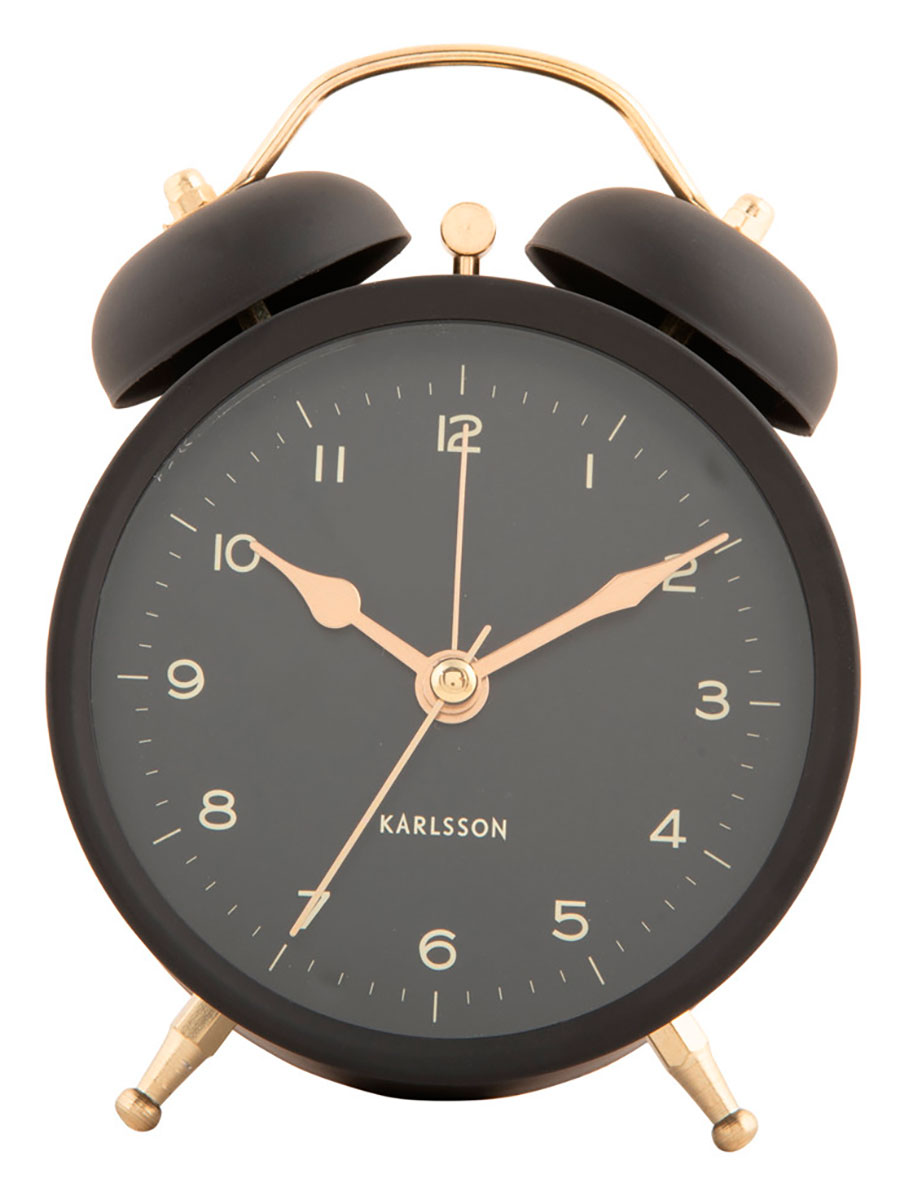 Karlsson Classic Twin Bell black KA5998BK omaa klassisen herätyskellon muotoilun, mutta modernilla otteella. Tässä raudasta valmistetussa herätyskellossa on musta värimaailma kullanvärisillä osoittimilla ja pidikkeillä, jotka sopivat hyvin yhteen. Classic Twin Bell -herätyskello on erinomainen hankinta yöpöydällesi. Herätyskello on leveydeltään 9,7 cm, pituudeltaan 13,5 cm ja paksuudeltaan 5,4 cm. Kello toimii yhdellä AA-paristolla (paristo ei sisälly pakkaukseen).