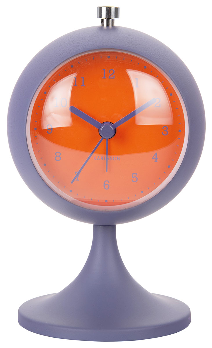 Karlsson Funky Retro bright purple KA5991PU herätyskellossa yhdistyy upea futuristinen sekä retro ulkonäkö. Koholla olevassa herätyskellossa on kirkaat pastellivärien yhdistelmät; violetti ulkokuori ja pidike oranssilla kellotaululla, jossa on myös violetit numeroindeksit ja osoittimet. Halkaisija 9 cm, korkeus 14,2 cm ja paksuus 6,3 cm. Herätyskellossa on hiljainen sekunti ja se toimii yhdellä AA-paristolla (paristo ei sisälly pakkaukseen). Karlsson-kelloilla on kahden vuoden takuu.