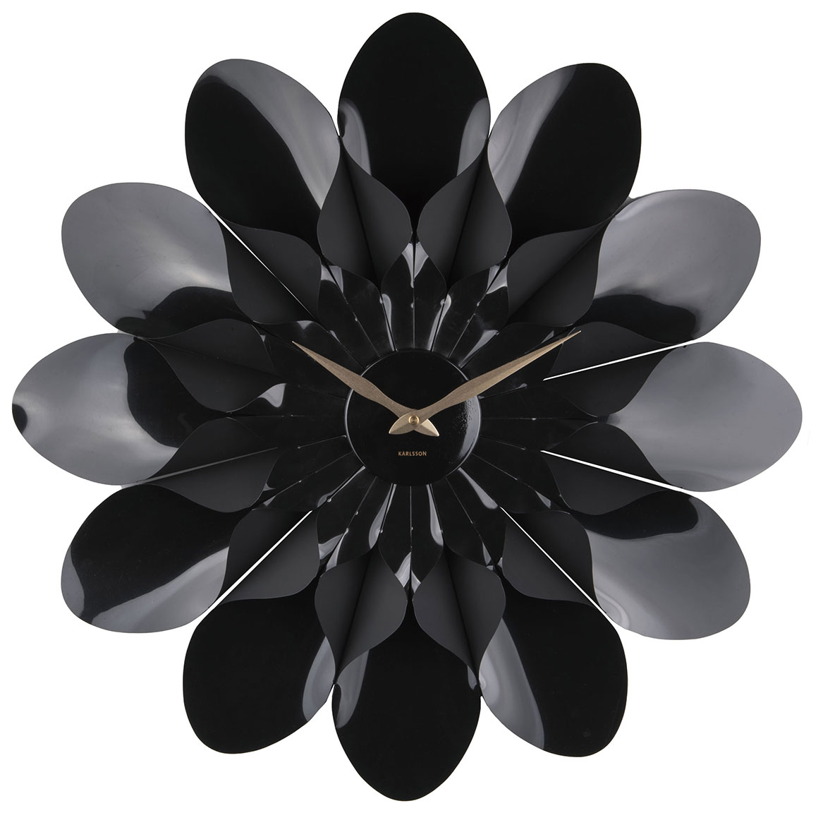 Karlsson KA5731BK Flower Plastic Black on tyylikäs seinäkello. Kello on valmistettu muovista, ja sen halkaisija on 60 cm ja paksuus 6 cm. Karlsson KA5731BK -kellossa on musta runko ja kullanväriset osoittimet. Kello toimii yhdellä AA-paristolla (paristo ei sisälly hintaan). Karlsson-kelloilla on kahden vuoden takuu.