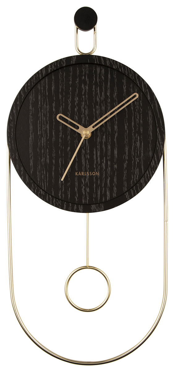 Karlsson Swing Pendulum Wood Veneer Black KA5892BK on tyylikäs seinäkello heilurilla. Kello on kooltaan 46 x 20 x 4 cm. Kello on valmistettu kullanvärisestä metallista ja mustasta puuvanerista. Sen osoittimet ja indeksit ovat kullanvärisiä. Karlsson KA5892BK toimii yhdellä AA-paristolla (paristo ei sisälly hintaan). Karlsson-kelloilla on kahden vuoden takuu.