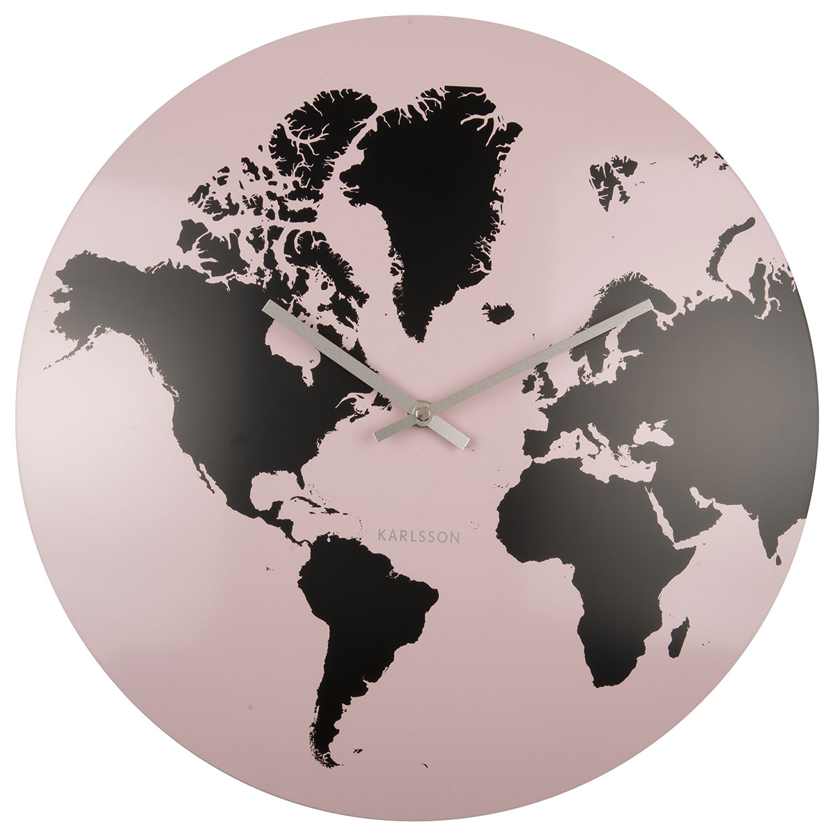 Karlsson World Map Metal Light Pink KA5889PI on tyylikäs seinäkello, joka on halkaisijaltaan 39 cm ja paksuudeltaan 4 cm. Metallista valmistetussa kellossa on tumma maailmankartta vaaleanpunaisella pohjalla. Karlsson KA5889PI toimii yhdellä AA-paristolla (paristo ei sisälly hintaan). Karlsson-kelloilla on kahden vuoden takuu.