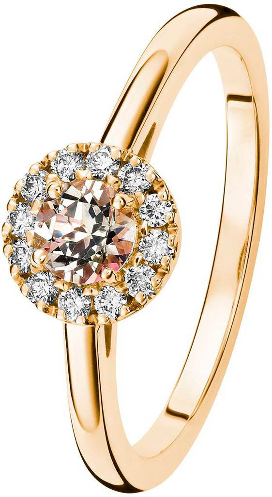 Kohinoor Garda 033-423-12 timantti-topaasi sormus on valmistettu 14 karaatin keltakullasta, jonka keskellä on kirkas pyöreä Misty Rose -topaasi, jossa on hento vaaleanpunainen vivahde. Topaasia ympäröi 12 kappaletta H/Si -laatuluokan briljanttia timanttia, joiden yhteispaino on 0,12 karaattia. Sormuksen rungon leveys on 1,5 mm ja leveys kivien kohdasta 7 mm.