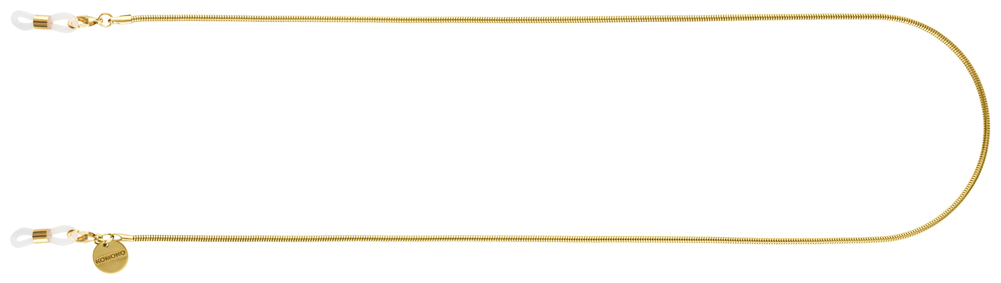KOMONO Boa Gold on klassisen kaulaketjun ulkonäön omaava kuparista valmistettu kullanvärinen aurinkolasinauha. Boan sileä, puhdas ilme ja tuntuma on täydellinen yhdistelmä jokaiseen lookiin. Ketjun pituus on 77 cm ja sen päädyissä on papukaijalukot ja kumiset päät.