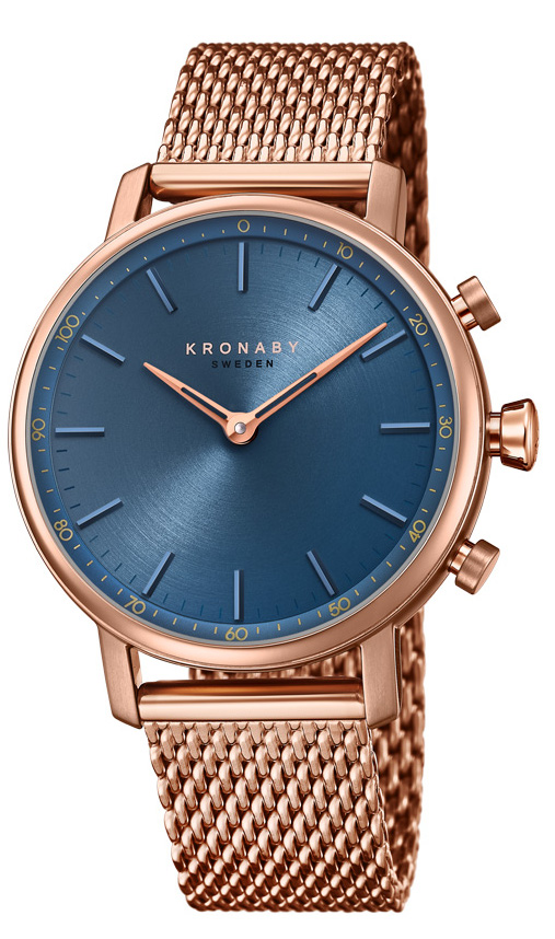 Kronaby Carat KS0668/1-hybridiälykello on vastaus arjen haasteisiin. Kellon avulla valitset ja keskityt itsellesi tärkeisiin asioihin ja ihmisiin, ja jätät turhan hälinän ulkopuolelle nauttien samalla Caratin ainutlaatuisesta muotoilusta. Kellossa on ruusukullanvärinen PVD-pinnoitettu, allergisoimaton, kirurginteräksestä valmistettu runko ja ranneke, sekä syvänsininen kellotaulu, joka kätkee taakseen laajan valikoiman älyominaisuuksia, joita räätälöit helposti tarpeisiisi sopivaksi oman älypuhelimesi avulla. Carat sisältää mm. askelmittauksen, jolla tarkkailet liikkumistasi omasta älypuhelimestasi, värinähälytyksen, kuuntelet musiikkia, otat kuvia itsellesi merkityksellisistä asioista, ja näet puhelimeesi tulevan puhelun suoraan kellostasi. Ja kun haluat sulkea kaiken tämän pois ja nauttia vain kellon perusominaisuuksista, toimii Carat kuin perinteinen kello.