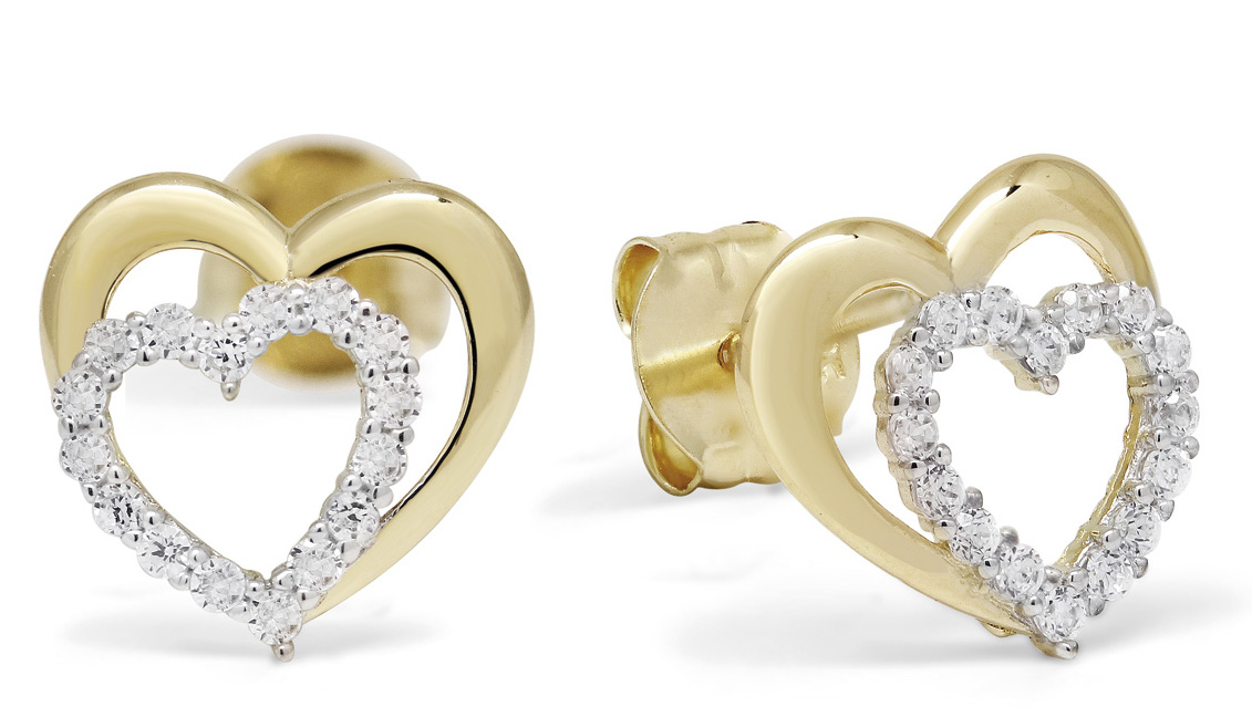 K-E96751Z-14-karaatin sydänkorvakoruissa on herkkä tupla-avosydän, jonka pintaan on istutettu briljanttihiottuja zirkonioita antamaan juhlavaa säihkettä. Korvakorujen leveys on 8,2 mm, ja ne toimitetaan valmistajan alkuperäisessä pakkauksessa.