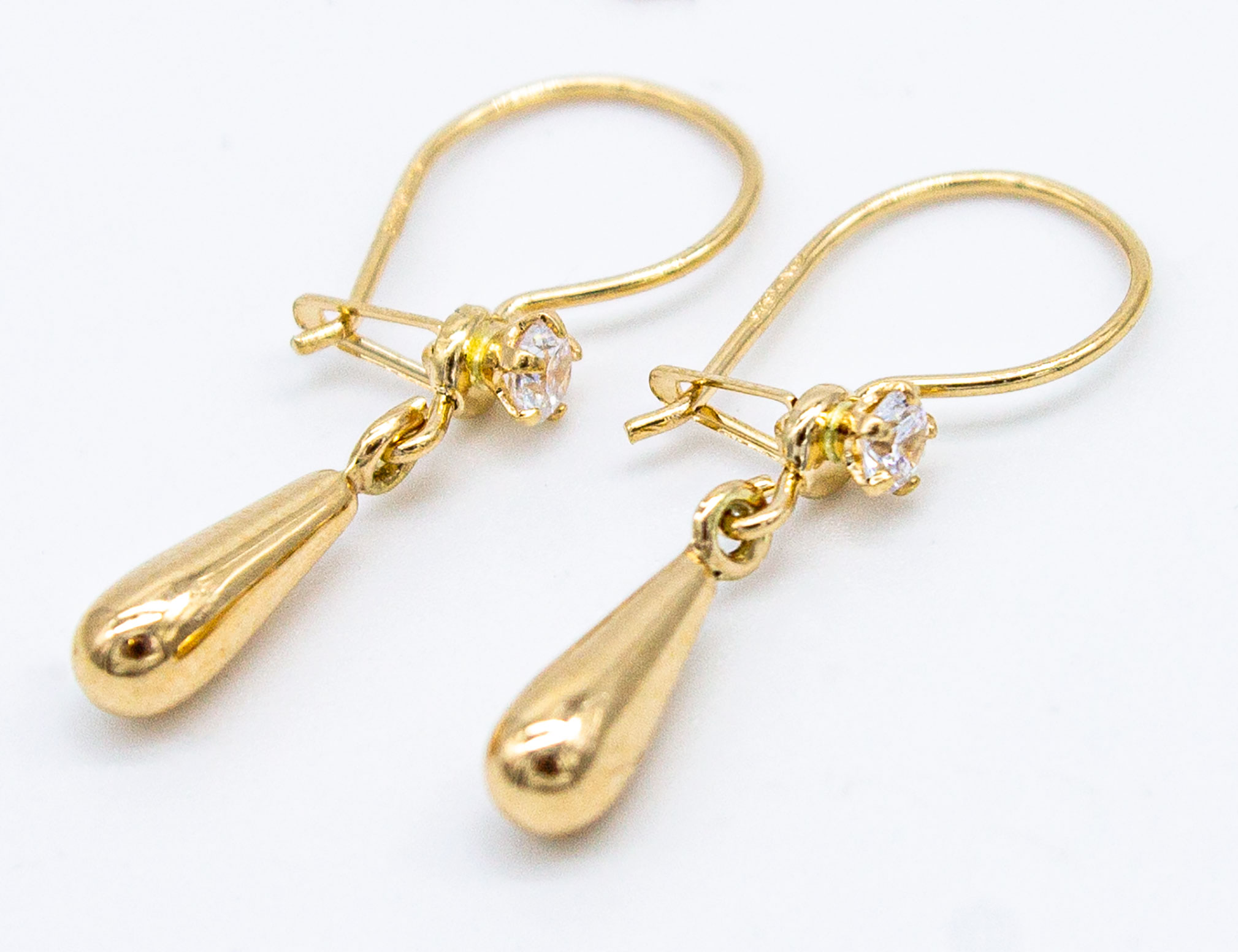PK2-23 korvakorut on valmistettu 14 karaatin kullasta. Muotoiluna on sileäpintainen kyynelkoru. Korvakoruissa on koukkukiinnitys, jossa on kiinni säihkyvä zirkonia. Korvakorujen pituus on 11 mm.