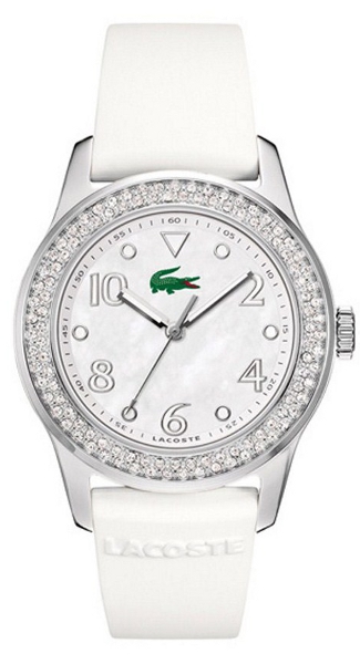 Naisten Lacoste 2000647 Advantage kello nyt erikoishintaan. Kellon rungon leveys on 38mm ja paksuus on 10mm. Kellotaulun ympärillä rungossa on zirkon korukiviä, rannekkeen leveys on 18mm. Lacoste rannekellot toimitetaan valmistajan alkuperäisessä rasiassa ja niille myönnetään 2 vuoden takuu.