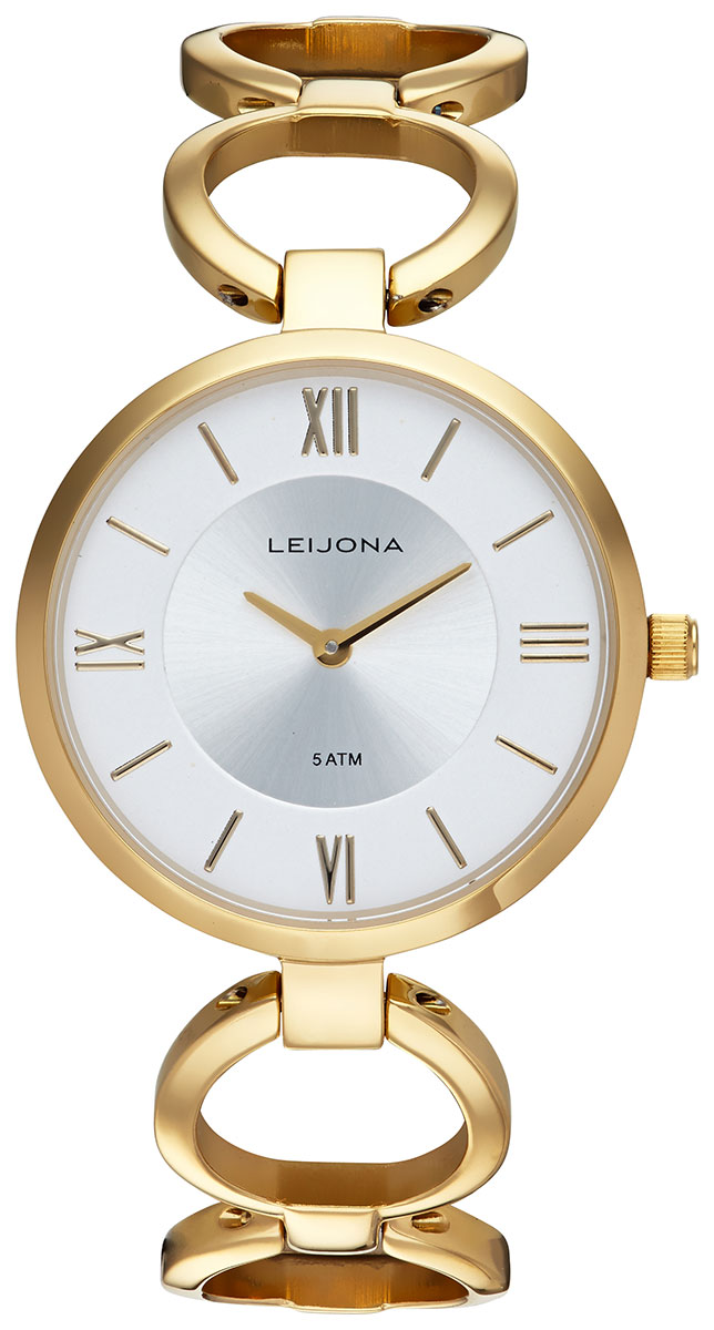 Leijona Kuura 5170-4489 naisten rannekellossa korostuu upeasti tyylitelty, kullanvärinen teräsranneke. Kello soveltuu hyvin niin arkikäyttöön sekä juhlavampiin tilaisuuksiin ja sen Miyota 2025 kvartsikoneistossa on n. 3 vuoden käyntivara. Kellon runko on valmistettu ruostumattomasta teräksestä ja se on leveydeltään 33 mm. Mineraalilasi suojaa vaaleaa kellotaulua, jossa on kullanväriset osoittimet ja indeksit. Leijona Kuura 5170-4489 kuuluu vesitiiviysluokkaan 50m / 5atm eli se on rajoitetusti vesitiivis (uintia ei suositella).