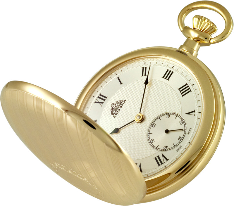 Leijona mekaaninen umpikuorinen kultadublee taskukello 5531-23 roomalaisilla numeroilla. Kellon kuoressa on raitakuvioo. Toimitetaan valmistajan alkuperäisessä rasiassa postikuluitta!